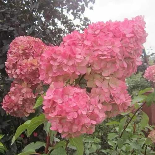 Листья яйцевидные и зеленые, не опушенные. Край листьев мелкозубчатый, что придает им дополнительную текстуру и оригинальность. Соцветие гортензии представляет собой метелку конусовидной формы. Оно имеет широкое основание и заостренную вершину. Соцветие состоит из фертильных и крупных стерильных цветков, которые отличаются своей оригинальной формой и окраской. У каждого цветка четыре овальные и немного волнистые лепестка. Изначально цветки раскрываются белым цветом, а затем окрашиваются в прекрасные розовые тона. Цветение начинается в июле и продолжается до октября, что позволяет вам наслаждаться ее красотой на протяжении длительного времени.